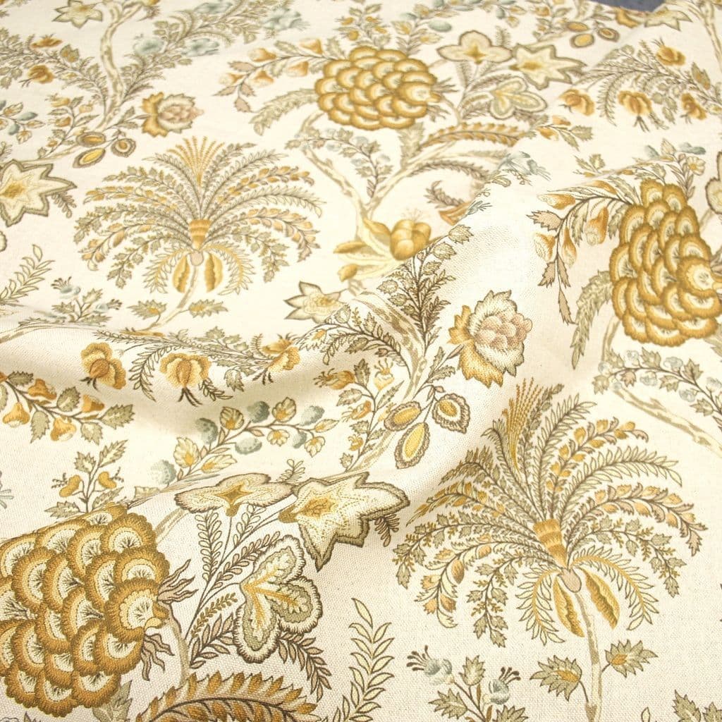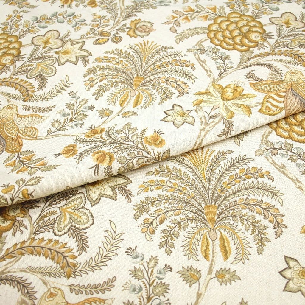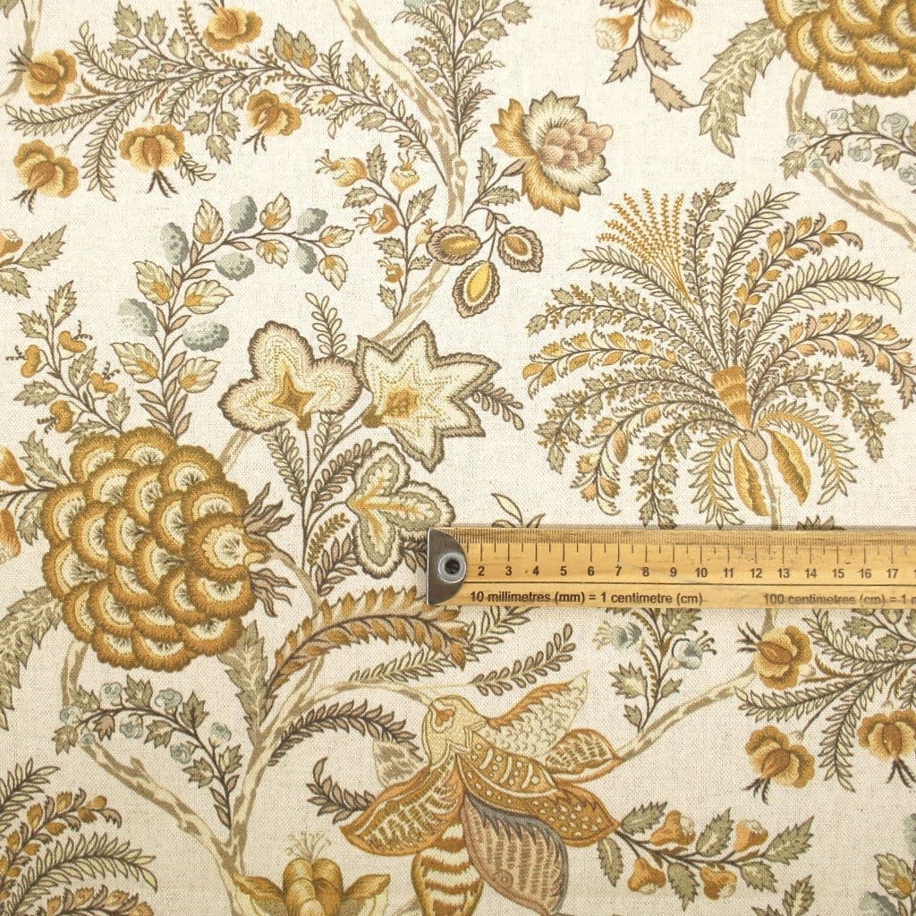 Brushed Cotton Linen Fabric Jacobean Chintz - Ochre