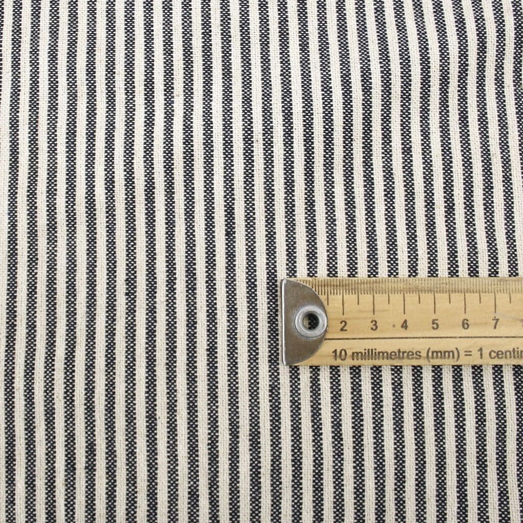 A timeless fine indigo stripe with a relaxed lived in rustic finish. This woven 100% cotton fabric is perfect for modern country cottage and farmhouse interiors. Ideal for curtains, blinds and cushions,