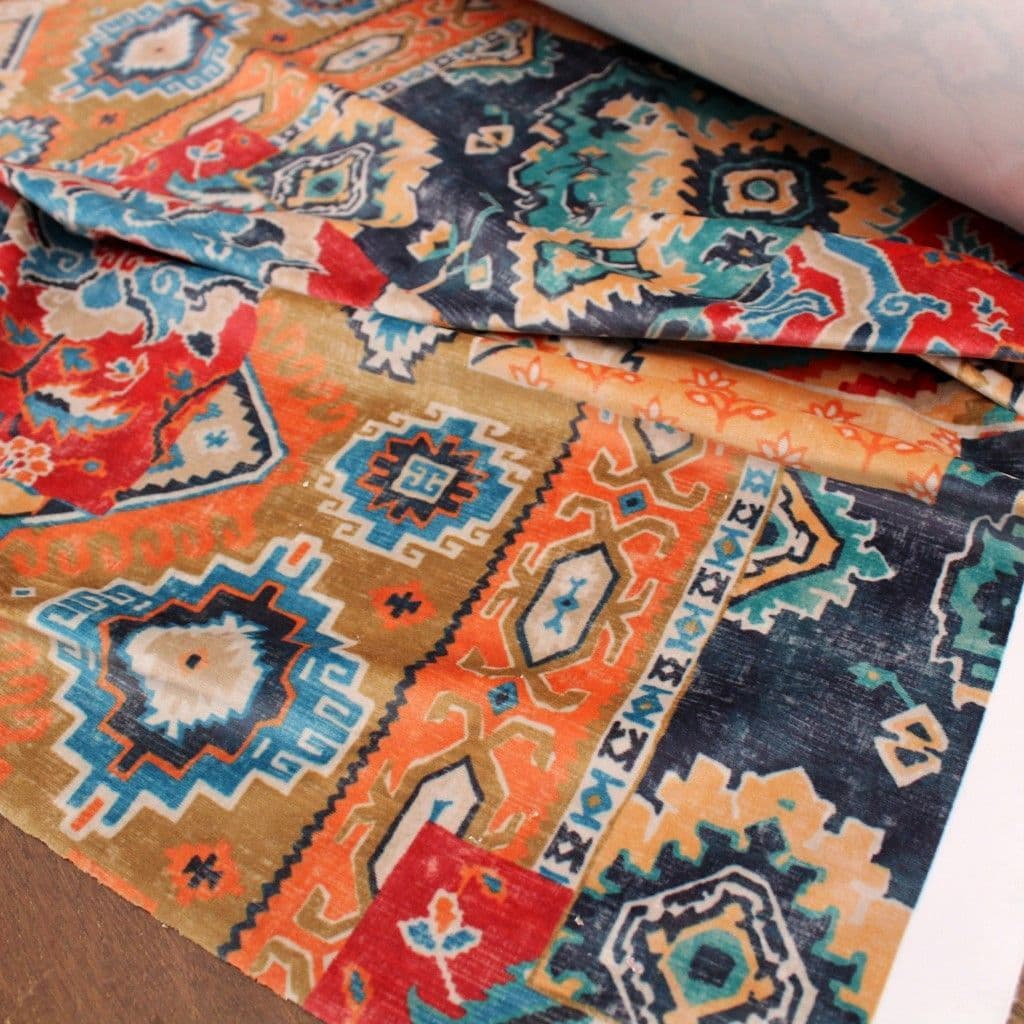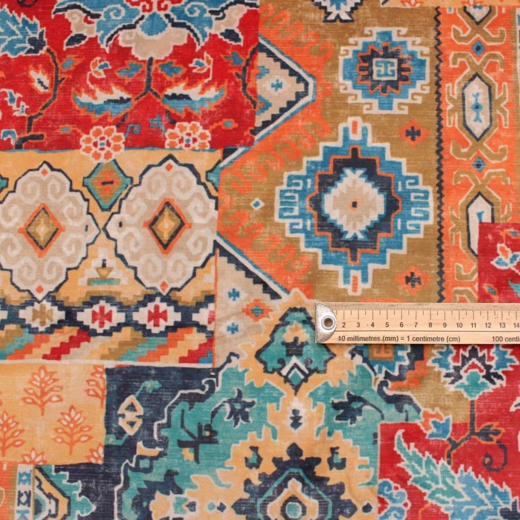 iLIV Patchwork Kilim Velvet Fabric - Chalet Rouge
