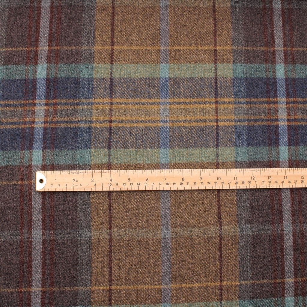 Wool Like Tweed Check Fabric - Moss Green Purple